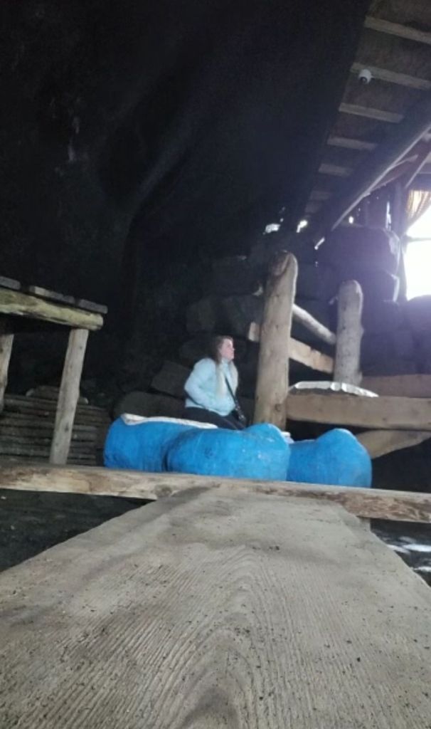 The trolless, Skessu, slept and rocked in her giant rocking chair, occasionally snoring loudly. Her cave was furnished with benches for visitors, a very very large bed for her, a big pair of her clogs and colorful art hanging and decorating all the nooks and crannies. I decided to climb into her clogs. I’ve always been told to try and put myself in other people’s shoe’s sometimes after all. I threw my legs over the vividly painted wood, wearily eyeing one particular art installation of a tree decorated with pacifiers, finding it a bit suspicious that if she didn’t eat children that there were so many pacifiers and no children around, despite the signs promise.